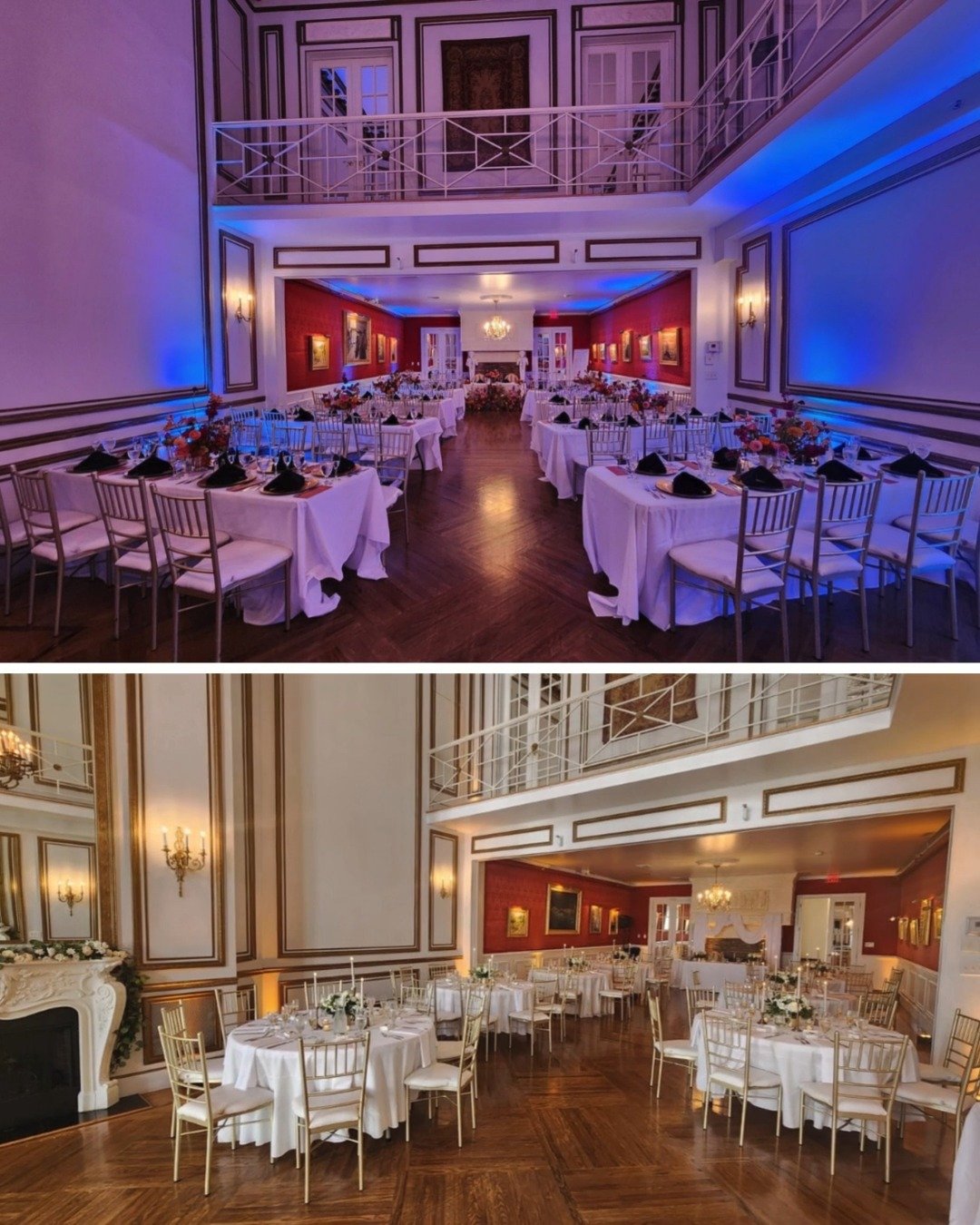 Exquisitely lit, this multi-faceted layout offers stately ambiance, privacy, and comfort, for your perfect day. The sky lit garden atrium room, with dramatic fountain, creates an air of sophisticated romance. A perfect setting for your event!